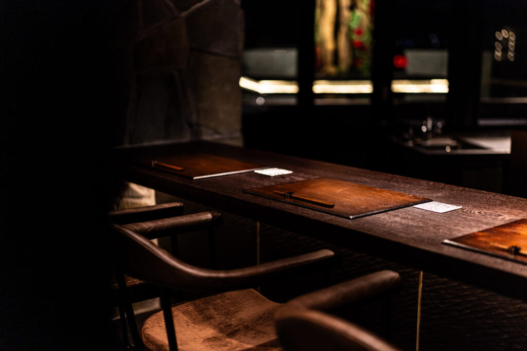 客単価1.5万円というややハイエンドな体験にふさわしい「上質で、確実に記憶に残る空間」を命題とし、極上のお肉と日本料理の技法が交差する美食のひとときを、五感で味わうための舞台を設計しています。