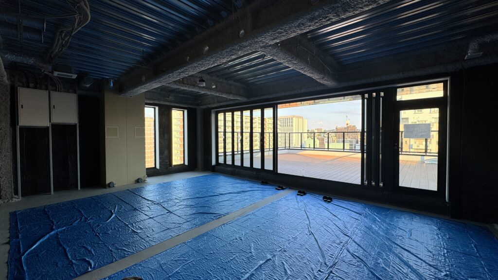 本プロジェクトにおけるもう一つのハイライトが、テラスに新たに設けた水盤(水鏡)です。