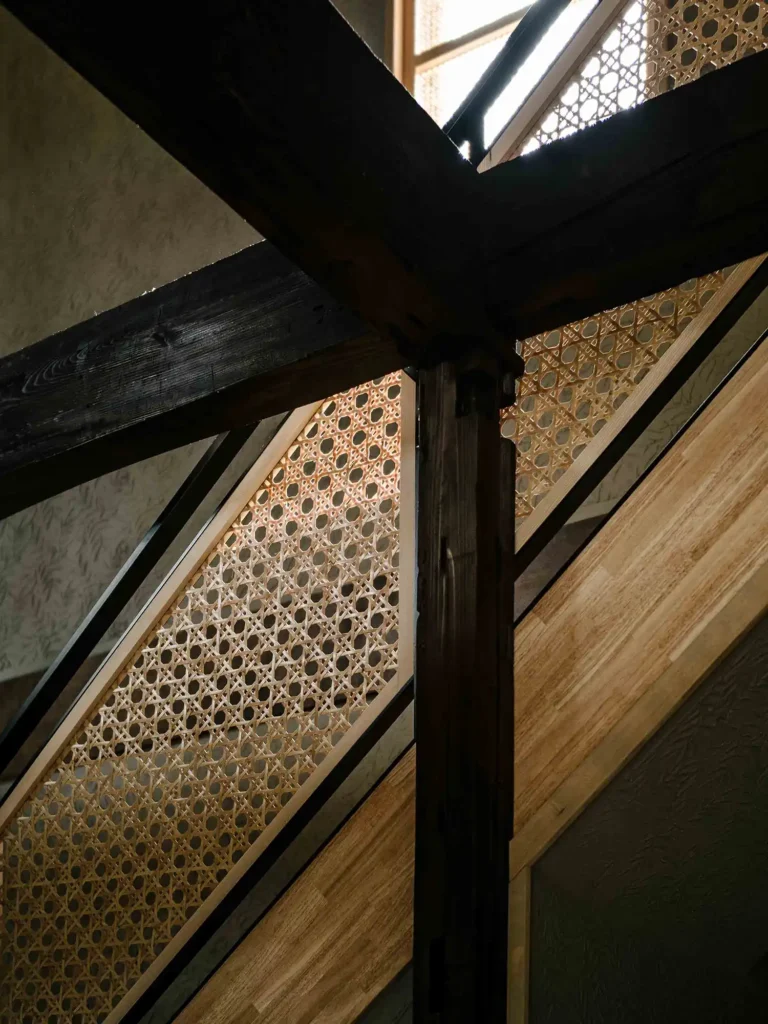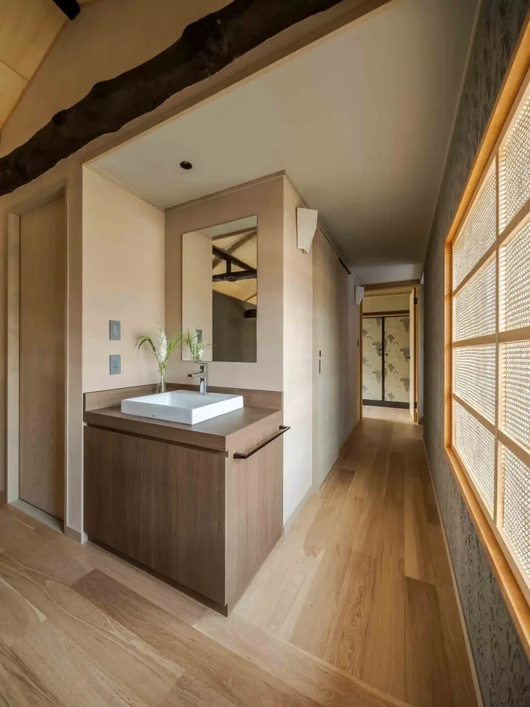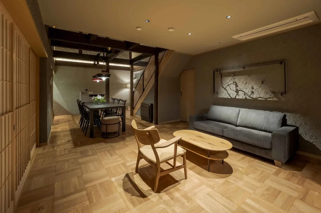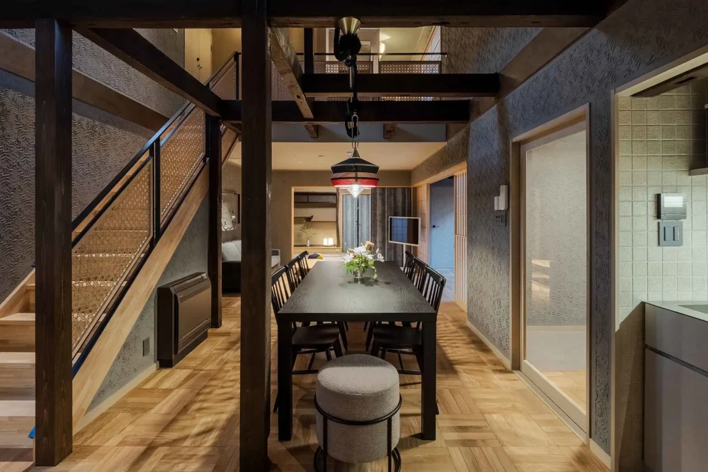 歴史の痕跡として刻まれた梁や柱を丁寧に活かし、繊細な左官表現、籐の編み、木の素材感を結び直すことで、和の温度を纏うコンテンポラリーな旅の時間を深く味わうための、設えと余白を表現しました。