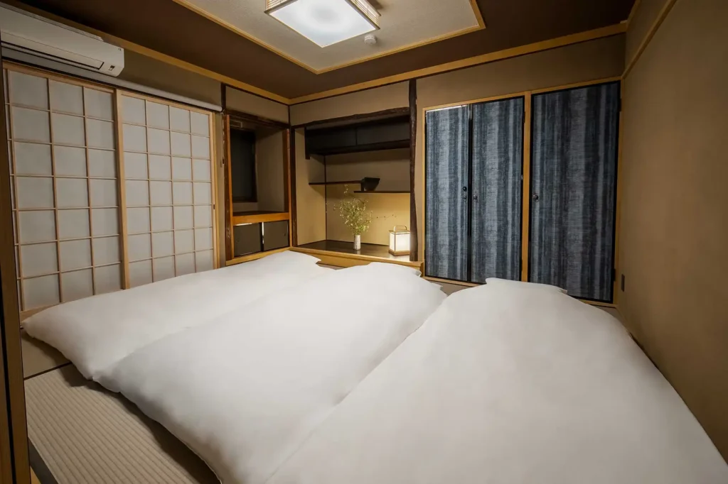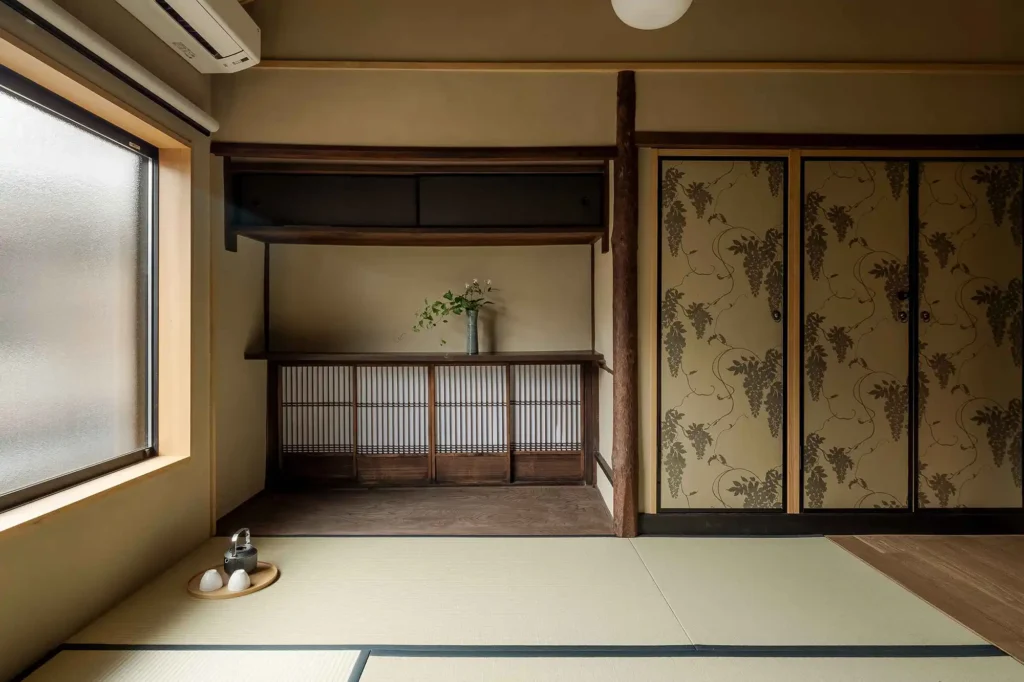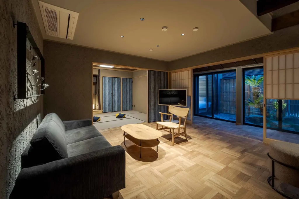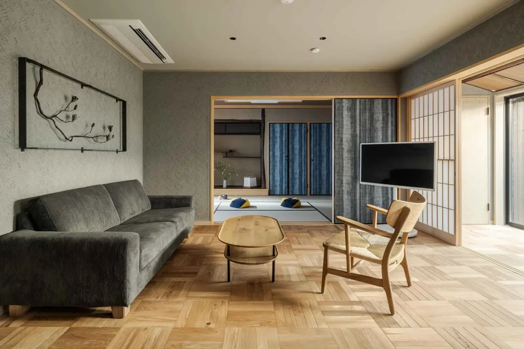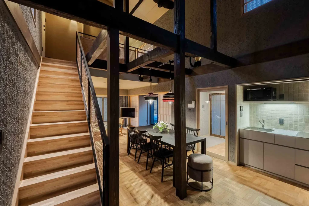 歴史の痕跡として刻まれた梁や柱を丁寧に活かし、繊細な左官表現、籐の編み、木の素材感を結び直すことで、和の温度を纏うコンテンポラリーな旅の時間を深く味わうための、設えと余白を表現しました。