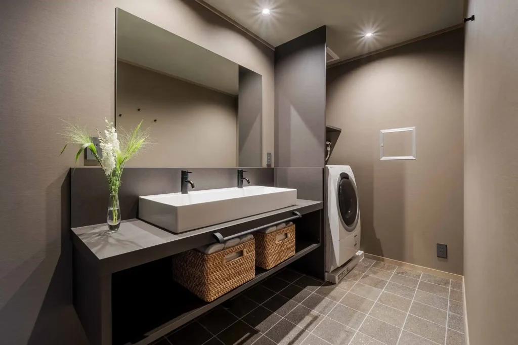 素材を編む、伝統と現代のバランス。籐編み、左官壁、障子などの伝統的な和素材に対し、金属・ファブリック・照明デザインを重ね合わせ柔らかく調和させ、和の端正さに、モダンさを加えました。